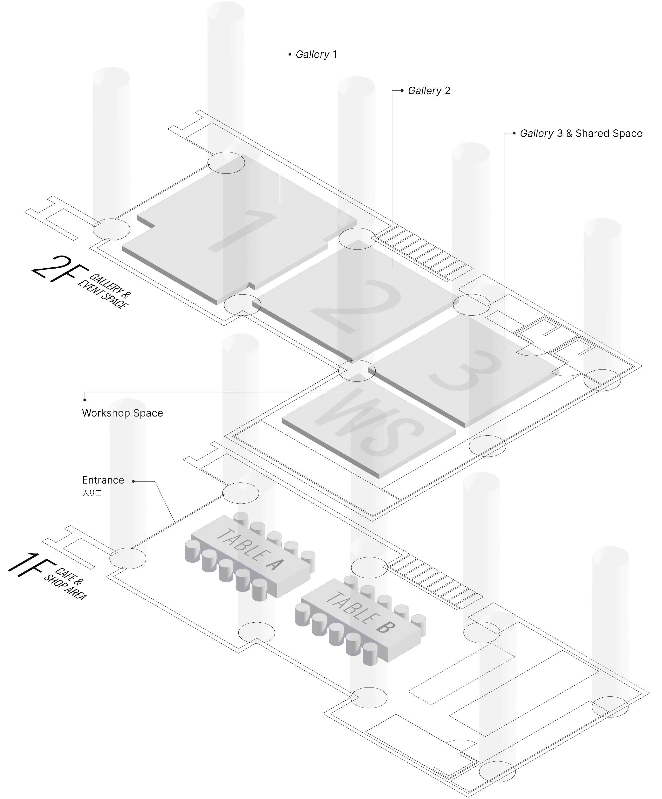 エリア毎 (Gallery 1, 2 or Workshop Area)